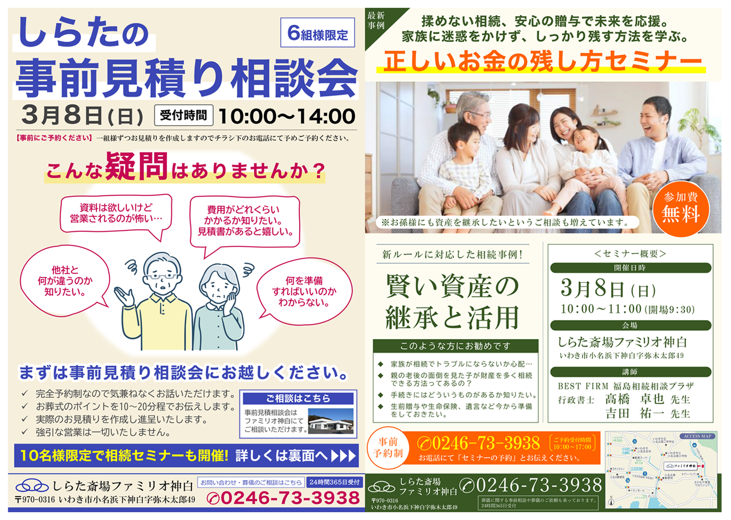 しらた斎場は故人様の想いとご家族のご希望に沿ったお葬儀を提案いたします。